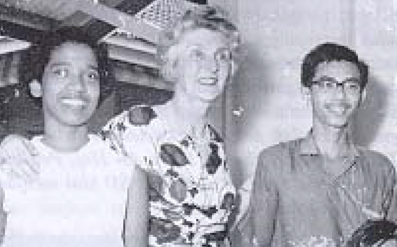 Gambar: Pelajar-pelajar yang lulus peperiksaan bergambar bersama Toh Puan Lady Templer, Eleanor Culas (kiri) dan Chung Kim Cheong (kanan)