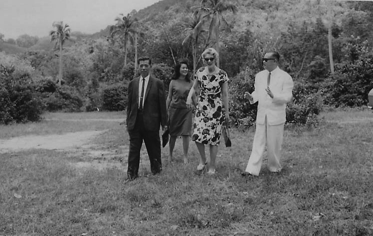 Toh Puan Lady Templer ditemani pengetua, Puan Saleena, dermawan Encik Loh Boon Siew dan ahli lembaga sekolah berkunjung ke tapak sekolah baru di Tanjung Bungah (April,1961)