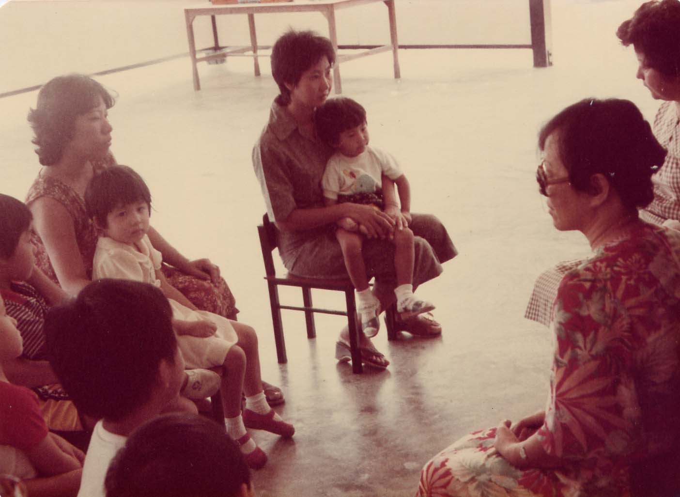 Dua kumpulan pelajar yang diajar dengan kaedah berlainan. Sebelah kanan ialah kumpulan komunikasi seluruh diajar oleh Cik Khoo Seok Mei dan sebelah kiri ialah kumpulan oral diajar oleh Cikgu Chan.